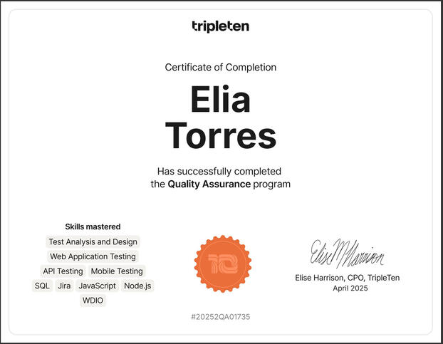 QA Engineer Certificate | Issued 2025